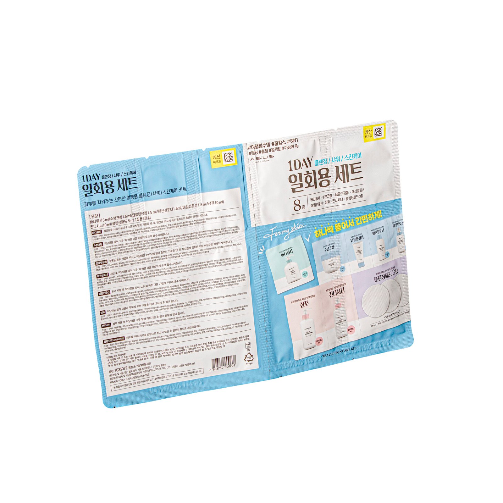 - One Day Travel Kit (Body Wash, Face Moisturizer Cream, Deep Cleansing Foam, Essential Toner, Face Emulsion Lotion, Shampoo, Conditioner, Cleansing/Makeup Remover Pads – 3 pcs)